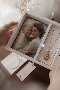 Uma caixa para ir além da entrega de fotos. Você deixará a experiência ainda mais especial, presenteando o seu cliente com um mimo. Ideias não faltam: pode ser docinhos, suspiros, bombons, um pequeno home spray. O espaço é livre para a sua criatividade.